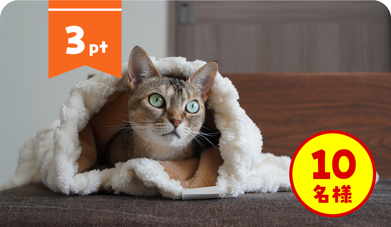 複数の景品にご応募いただけますが、ご当選はお一人様一回限りです。例えば、2ptコースにご当選された場合、3ptコース/4ptコース/5ptコースの抽選対象からは除外されます。重複して当選することはございません。※1ptコース「もふもふ部デジタル会員証」はもれなくプレゼントのため重複当選の対象に含まれません。「もふもふ部デジタル会員証」を受け取ったから他の景品に当選しない、ということはございません。