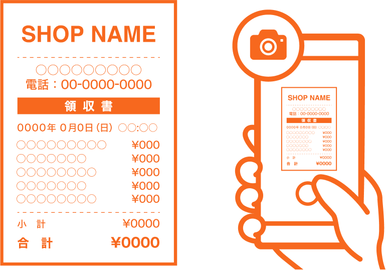 - レシートが長い場合は、該当部分以外を折り曲げた状態で撮影してください。
